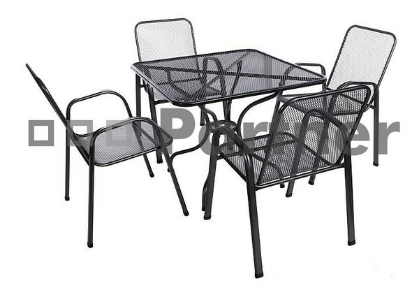 Moderná záhradná zostava určená aj pre terasy a záhrady. Kvalitná kovová konštrukcia je stabilná a pevná. Stoličky majú nižšiu opierku chrbta a praktické podrúčky.