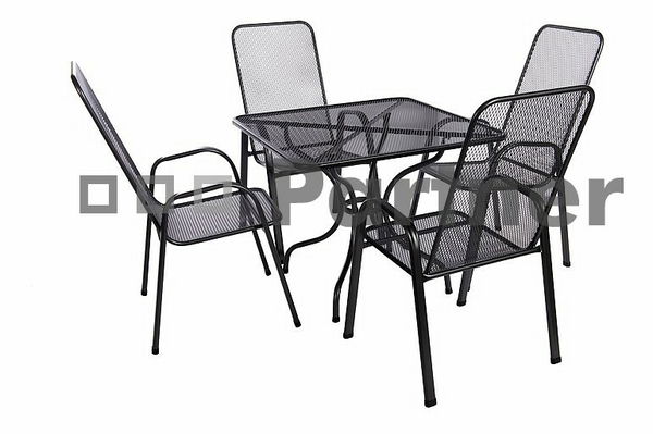 Moderná záhradná zostava určená aj pre terasy a záhrady. Kvalitná kovová konštrukcia je stabilná a pevná. Stoličky majú vyššiu opierku chrbta a praktické podrúčky.