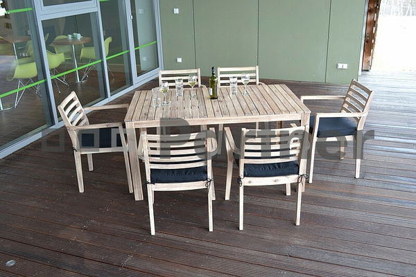 Záhradná zostava vyrobená z exotického dreva Akácia. Krásny prírodný dizajn je nadčasový a určený pre tých, ktorí sa chcú odlíšiť. Je vhodná do záhrad, na terasy či na vybavenie komerčných priestorov. Komfortná stolička je stohovateľná. Naskladaním stoličiek na seba ušetríte potrebné miesto pri ich uskladnení. Pre zvýšenie pohodlia pri sedení sú k stoličkám sedáky v cene.