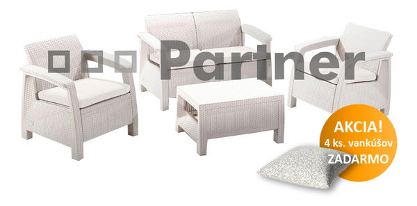 Moderná záhradná zostava Corfu biela, ktorá obsahuje dve kreslá, dvojmiestnu pohovku a jeden obdĺžnikový stolík, je vyrobená z umelého ratanu. Je vhodná na umiestnenie na balkón, terasu či do záhrady. Vďaka použitému materiálu nemusíte zostavu schovávať do interiéru pri nepriazni počasia. Údržba je veľmi jednoduchá. Stačí mokrá handrička alebo špongia a nábytok je opäť ako nový. Pre väčšie pohodlie pri sedení Vám pribalíme sedáky bielej farby zdarma. Nenasiakavý textilný obal sedákov je možné kedykoľvek zložiť, jednoduchým rozopnutím skrytého zipsu a oprať v práčke. Zostava je dodávaná v demonte, no montáž je veľmi jednoduchá a nezaberie veľa času.