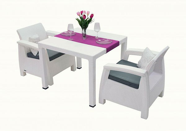Záhradný nábytok Corfu Mini 1+2 (biela) (um. Ratan) *vankúše ZADARMO