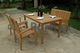 Drevená záhradná zostava vyrobená z exotickej dreviny teak, ktorá sa vyznačuje svojou tvrdosťou a odolnosťou. V zostave sa nachádzajú dve kreslá, lavička a obdĺžnikový stôl. Elegantná a masívna zostava vám skrášli vašu záhradu alebo terasu.