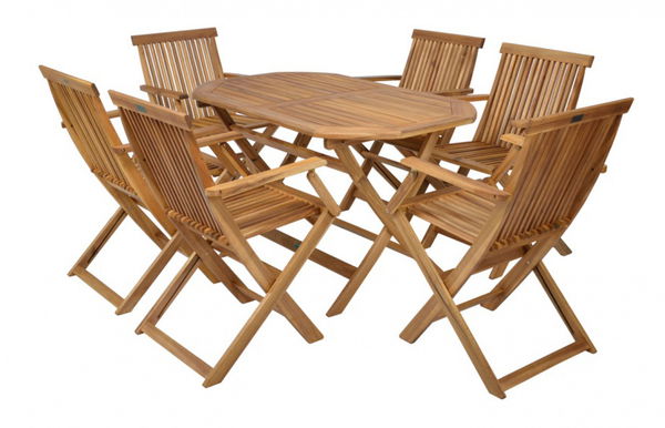 Luxusná záhradná zostava šiestich kresiel a stola z tvrdého dreva Akácia. Vhodné pre záhradné kryté plochy. Pri vhodnom ošetrení Teakovým olejom možno používať v exteriéri.