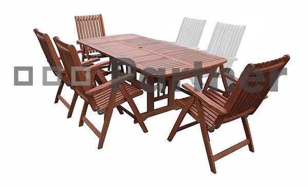 Zostava záhradného nábytku Lyon je nielen krásna napohľad, ale aj pohodlná vďaka polohovateľnej stoličke a flexibilná vďaka stolu s unikátnym rozkladaním. Bez toho, aby ste museli zo stolu odkladať veci, možete ho rozložiť vysunutím jedného nadstavca na 180 cm. Vysunutím oboch nadstavcov, získate šírku až 215 cm. Bezpečnostná poistka zabraňuje nechcenej manipulácii s doskou stola. Stoličku si ľahko nastavíte do polohy, ktorá Vám vyhovuje, nadvihnutím podrúčiek a sklopením operadla. Unikátny systém kovania eliminuje možnosť poškodenia stoličky. Zostava je vyrobená z exotického dreva Meranti, ktoré na prvý pohľad upúta svojou netradičnou farbou. Dobre poslúži pri raňajkách pre dvoch, ale aj pri veľkej záhradnej párty.