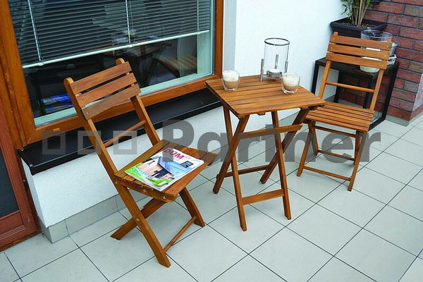Jednoduchý set zložený zo stolu a dvoch stoličiek, je vhodný do záhrady, na terasu či balkón. Je vyrobený z kvalitného exotického dreva Akácia. V prípade, že potrebujete voľný priestor, viete stôl aj stoličky rýchlo zložiť a uskladniť na malom priestore. Farebným prevedením pôsobí veľmi príjemne a skvelo zapadne do prírodného charakteru záhrady.