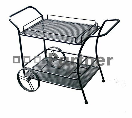 Luxusný servírovací stolík zaujímavého dizajnu je skvelým doplnkom na terasy, záhrady, proste všade tam, kde potrebujete obslúžiť svojich blízkych, kamarátov, zákazníkov. Kovová konštrukcia je stabilná a jednoduchá na údržbu. Má dve horizontálne úrovne s postrannými zarážkami, ktoré zabezpečia, aby Vám nič nevypadlo. V spodnej časti je konštrukcia pre uloženie fliaš. Vďaka dvom kolieskam sa môžete bezproblémov pohybovať v priestore.