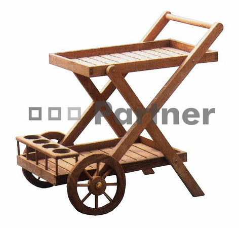 Praktický servírovací stolík z exzotickej dreviny teak. Má dve odkladacie plochy a stojan na fľaše. Pomocou dvoch koliesok ho jednoducho premiestňujete v priestore. Vhodný ako doplnok k setu záhradného nábytku na terasu alebo do zimnej záhrady. Pre výrazné predĺženie životnosti a zachovanie kresby teakového dreva, doporučujeme aspoň jedenkrát ročne ošetriť teakovým olejom.