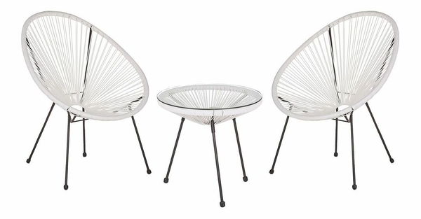 Multifunkčná súprava pozostávajúca z 2 stoličiek a stola, vhodná do interiéru aj exteriéru. Sedadlá majú výplet z umelého ratanu na robustnom oceľovom ráme s práškovou povrchovou úpravou. Stolová doska vyrobená z tvrdeného skla je zaistená príchytkami a poskytuje dostatok priestoru na umiestnenie nápojov a občerstvenia. Súprava inšpirovaná ikonickým mexickým dizajnom rozžiari každý priestor a stane sa pútavým prvkom.