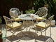 Skrášlite svoj exteriér pomocou tejto záhradnej sady a užite si príjemnú atmosféru teplých a slnečných dní. Súprava je vyrobená z ľahkého, no pevného hliníka a ponúka dostatok miesta na stolovanie až pre štyri osoby. Stôl i stoličky sa pýšia ladnými tvarmi a vzormi, ktoré dodajú každému prostrediu elegantnú, vintage atmosféru. Súprava je vybavená čalúnenými vankúšmi, ktoré zaisťujú maximálny pocit pohodlia počas sedenia.