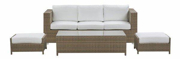 Vylepšite vzhľad svojho vonkajšieho priestoru pomocou tejto klasickej sedacej súpravy. Vďaka svojmu jednoduchému, ale nadčasovému dizajnu sa súprava krásne hodí do moderného, tradičného i súčasného prostredia. Je vyrobená z odolného umelého ratanu a má bohato čalúnené vankúše na sedadlá a operadlá. Súprava sa dodáva spolu s konferenčným stolíkom s doskou z tvrdeného skla, ktorý ponúka dostatok priestoru na rannú kávu a občerstvenie. Taburetky možno umiestniť pod stolík, ktorý pre jednoduchšie uskladnenie mimo sezóny, možno umiestniť na pohovku.