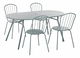 Táto štýlová jedálenská súprava je praktickým doplnkom do akéhokoľvek vonkajšieho prostredia. Umožňuje vám vychutnať si jedlo pod holým nebom alebo len tak relaxovať s priateľmi či príbuznými. Je vyrobená z nehrdzavejúceho kovu, odolá nepriaznivým poveternostným podmienkam a intenzívnemu používaniu, a zároveň sa ľahko čistí. Súprava sa dodáva so štyrmi kovovými stoličkami a jej praktickosť navyše zvyšuje otvor na slnečník v strede vrchnej dosky stola. Nadčasový dizajn pôsobí jednoducho, no zároveň štýlovo a dodá vašej záhrade nevšednú atmosféru.