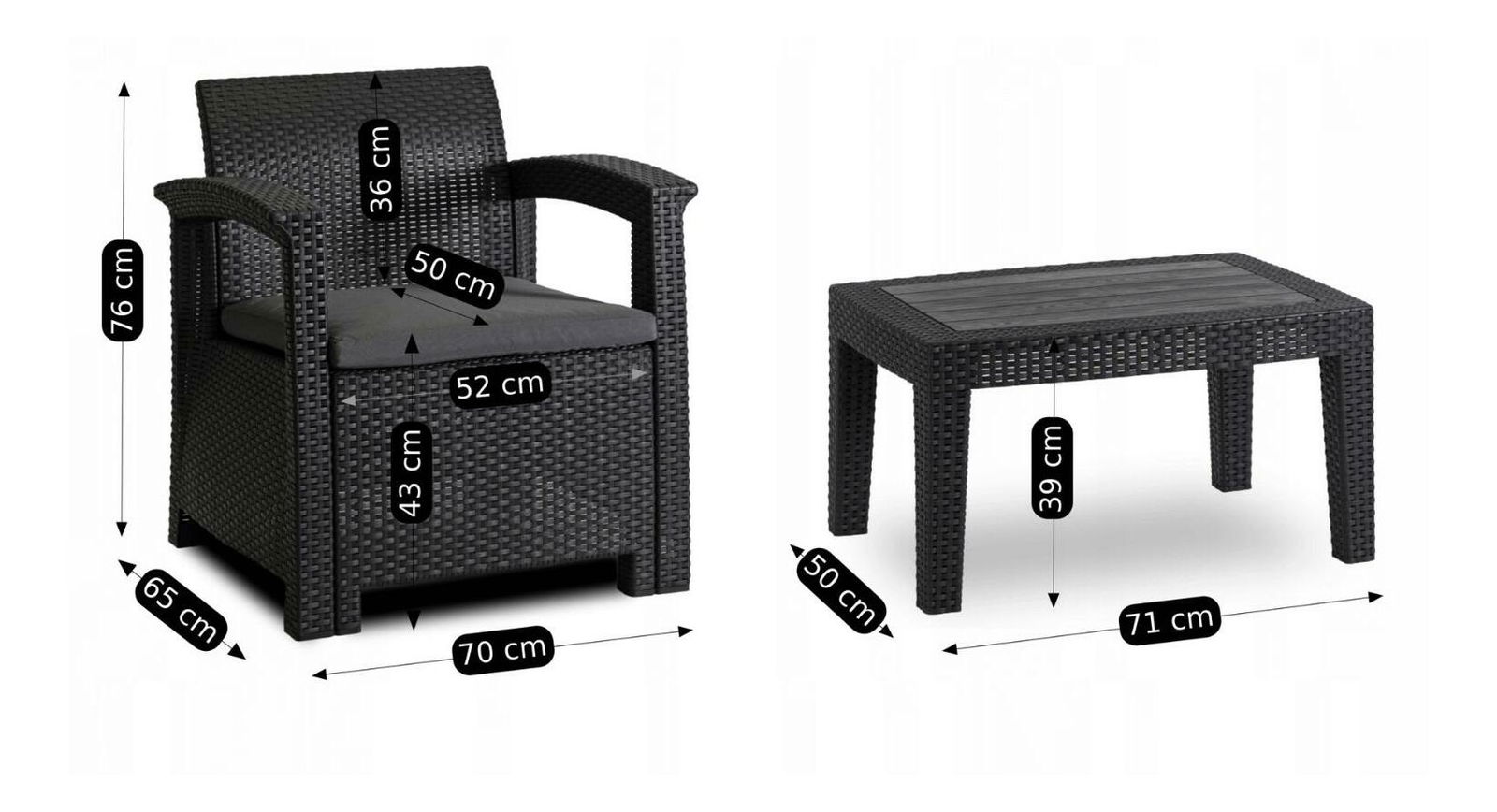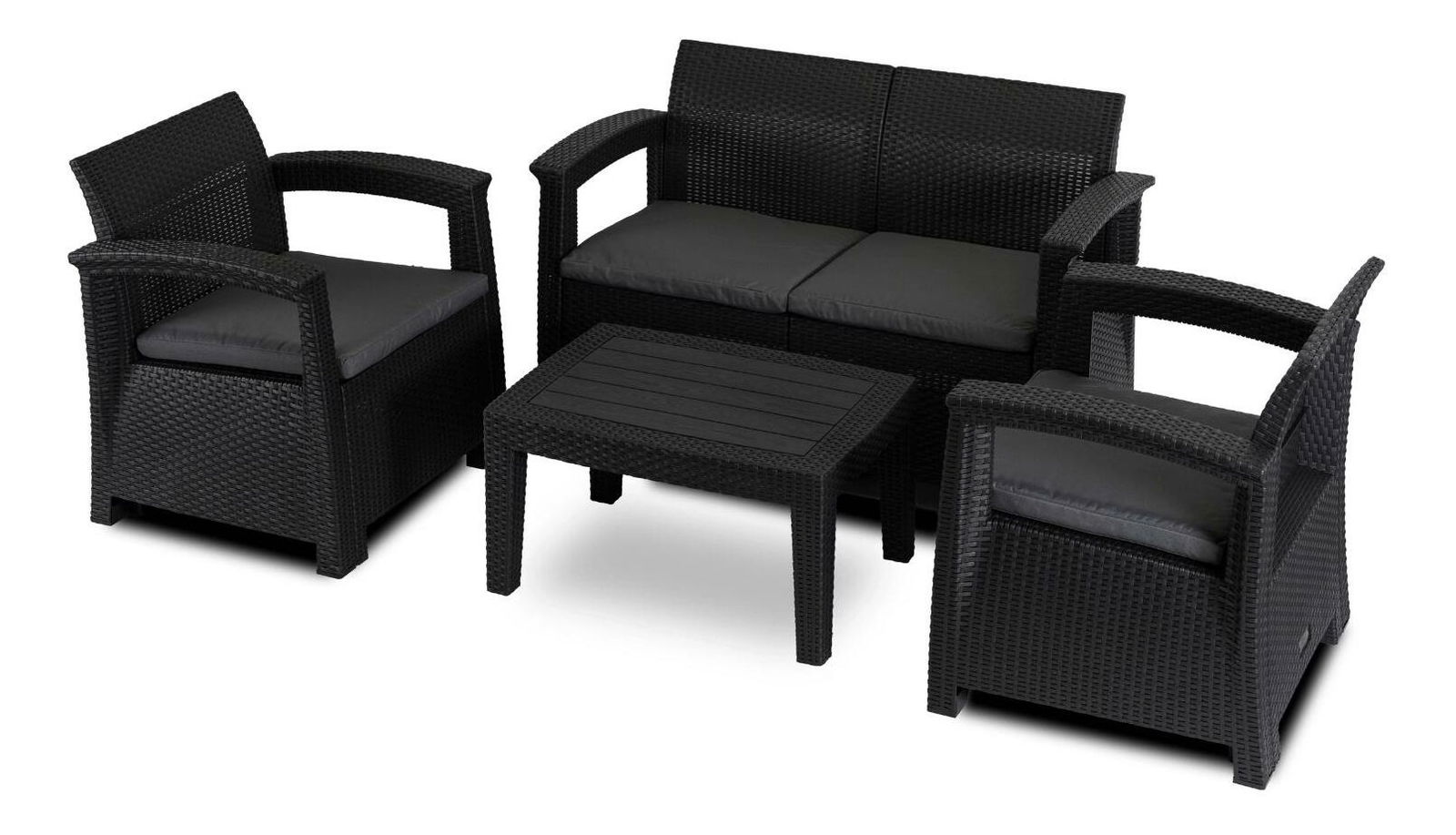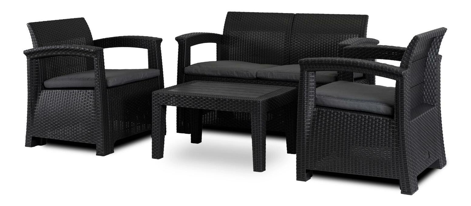 Záhradný set Consulto (čierna + tmavosivá) (pre 4 osoby)
