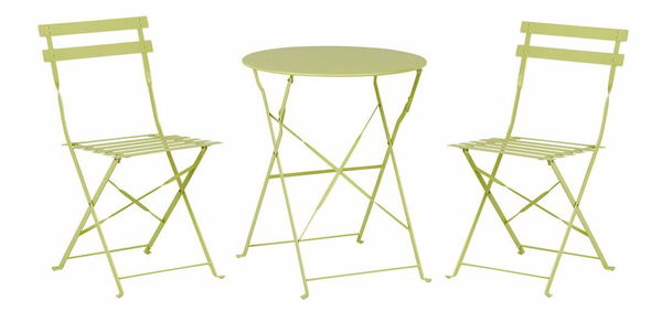 Táto univerzálna súprava pozostáva z dvoch stoličiek a praktického bistro stolíka a je ideálna na záhradu alebo balkón v akomkoľvek dizajne. Všetky prvky sú ľahké a skladacie. Kvalitná konštrukcia z nelegovanej ocele umožňuje dlhodobé vonkajšie používanie. Táto očarujúca bistro súprava je ideálna na vytvorenie miesta na vašom dvore alebo balkóne, kde si budete môcť oddýchnuť, vychutnať si šálku kávy a slnečné lúče.
