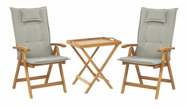 Pohodlne sa usaďte a vychutnajte si rannú kávu na balkóne vďaka tejto praktickej bistro súprave. Je vyrobená z vysokokvalitného akáciového dreva vo svetlom prírodnom odtieni, vďaka ktorému dokonale zapadne do akéhokoľvek prostredia. Stoličky a stôl sa dajú zložiť, takže mimo sezóny ich jednoducho uskladníte. Súprava sa dodáva so sedacími vankúšmi pre ešte väčšie pohodlie.
