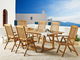 Pohodlne sa usaďte a vychutnajte si stolovanie na čerstvom vzduchu vďaka tejto klasickej vonkajšej jedálenskej súprave. Je vyrobená z vysokokvalitného akáciového dreva vo svetlom prírodnom odtieni, vďaka ktorému dokonale zapadne do akéhokoľvek prostredia. Praktická rozťahovacia vrchná doska stola poskytuje dostatok miesta na bežné rodinné večere, ale aj rôzne oslavy alebo večierky v záhrade.