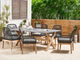 Vďaka tejto elegantnej súprave vytvoríte na svojej terase dokonalý vonkajší jedálenský kút. Súprava pozostáva z priestranného stola a 6 prútených stoličiek. Doska stola je vyrobená z vláknitého cementu, ktorý je odolný a jednoducho sa udržiava. Podstavce stola a stoličiek sú vyrobené z pevného akáciového dreva, ktoré zabezpečuje stabilitu všetkých kusov nábytku, a taktiež vytvára jedinečnú farebnú kombináciu. Vrchná časť stoličiek je vyrobená zo syntetického prútia a všetky z nich sú vybavené pohodlným sedacím vankúšom.