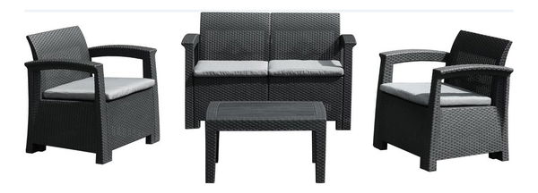 Zahradný set Relaxo čierna je práve to, čo potrebujete na relaxáciu na Vašej terase alebo v záhrade. Tento elegantný set obsahuje dva kreslá a stolík s nádhernou sklenenou doskou. Kreslá majú široké sedenie a opierky na ruky pre pohodlné sedenie, a sú vyrobené z kvalitnej a odolnej oceľovej konštrukcie s čiernym práškovým náterom. Čierna farba setu pridáva moderný a štýlový vzhľad, ktorý sa hodí k akémukoľvek exteriéru. Stolík má rovnakú konštrukciu a sklenenú dosku, ktorá dodáva celému setu dokonalý vzhľad. Zahradný set Relaxo čierna je ideálny na kaviarenské záhrady alebo na relaxáciu pri káve alebo čaji s priateľmi a rodinou. Jeho skladanie a skladoanie je jednoduché a rýchle, takže ho môžete prevážať a ukladať kdekoľvek.