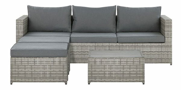 Táto funkčná sedacia súprava dokonale doplní akýkoľvek vonkajší priestor. Pozostáva zo štyroch kusov, ktoré je možné kombinovať alebo rozložiť. 3-miestna pohovka má zdvíhacie sedadlo na oboch stranách, takže ju možno použiť ako posteľ a s dvomi priloženými taburetkami môžete jednoducho vytvoriť rohovú pohovku. Súprava je vyrobená z odolného umelého ratanu a jej súčasťou sú hrubé vankúše a konferenčný stolík.