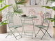 Vneste do svojho vonkajšieho priestoru dokonalú romantickú atmosféru. Táto zelená skladacia súprava je ideálnou voľbou na každý malý balkón alebo terasu, kde poskytne krásne, útulné miesto na sedenie pre dvoch. Súprava s práškovým lakovaním s opotrebovaným vzhľadom, skvele zapadne do každého priestoru inšpirovaného vintage štýlom. Pridajte zopár kvetináčov s rastlinami a vychutnajte si príjemnú atmosféru pri rannej šálke kávy.