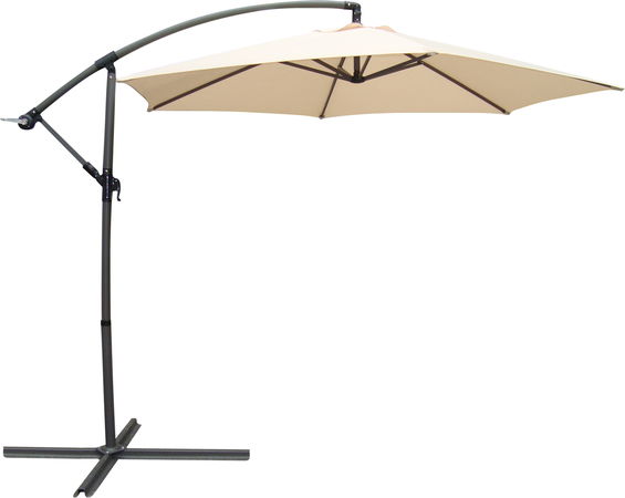 Hliníkový slnečník s priemerom 2,5 m, priemerom tyče v základni 48 mm a 6 hliníkovými priečnikmi 12 x 18 mm a krížovou základňou. Jednoduché otváranie a zatváranie kľukou. Polyester 180 g/m2 s ventiláciou.