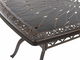 Klasický, vintage stolík, ktorý obohatí každý vonkajší priestor a dodá mu elegantný nádych. Je vyrobený z odolného a zároveň ľahkého hliníka, ktorý sa jednoducho udržiava. Jeho priestranná vrchná doska so zložitými ozdobnými vzormi, ktoré ladia s hnedým povrchom, mu dodáva sofistikovaný vzhľad. Pridajte k nemu ladiace stoličky a vytvorte si vo svojej záhrade krásny jedálenský kút.