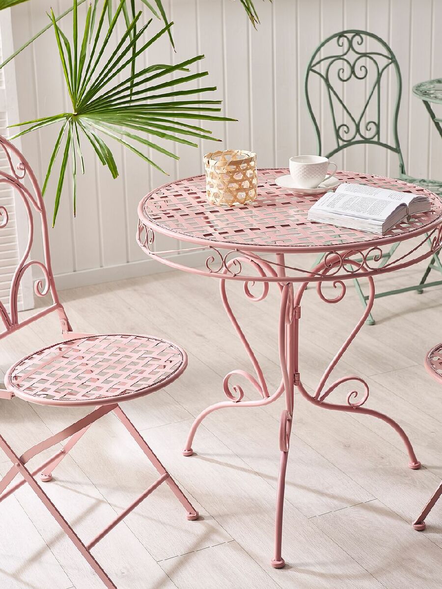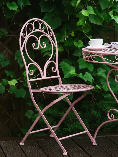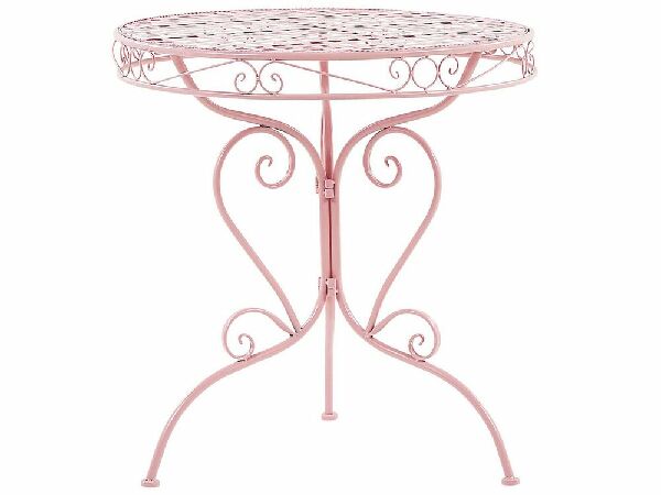Tento krásny kovový záhradný stolík s nádychom štýlu vintage sa stane pútavým doplnkom každej záhrady či balkóna. Jeho ružová konštrukcia s práškovým nástrekom s ozdobným motívom, dodá akémukoľvek priestoru romantickú atmosféru. Keďže je vyrobený zo železa, tento kus nábytku sa jednoducho čistí a pri správnej údržbe vydrží dlhé roky.