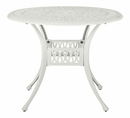 Skrášlite svoj exteriér pomocou tohto krásneho záhradného stola a užite si príjemnú atmosféru teplých a slnečných dní. Stôl je vyrobený z ľahkého, no pevného hliníka a pýši sa ladnými tvarmi a vzormi, ktoré dodajú každému prostrediu elegantnú, vintage atmosféru. Široká, okrúhla vrchná časť poskytuje dostatok miesta na stolovanie až pre štyri osoby.
