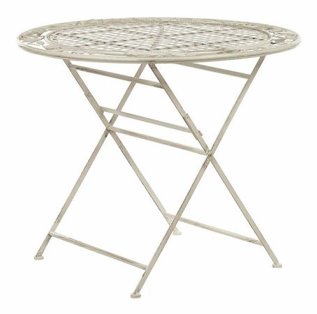 Vneste na svoj balkón či do záhrady nádych provensálskeho štýlu s týmto elegantným okrúhlym stolom. Je vyrobený zo železa s práškovým lakovaním s vintage efektom a vyznačuje sa dizajnom s kvetinovými ornamentmi. Pridajte k nemu zodpovedajúce stoličky a vytvorte si tak dokonalé miesto na raňajky či obed v akomkoľvek vonkajšom priestore. Stolík je skladací, takže mimo sezóny ho môžete jednoducho uskladniť.