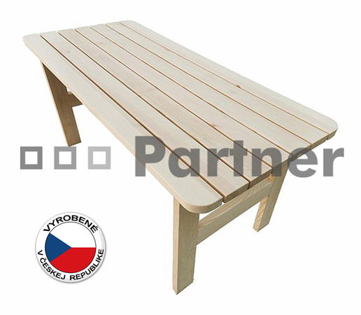 Záhradný stôl Vám poslúži v záhrade pri grilovaní, alebo na terase s kombinácii so stoličkami, ako vhodné sedenie pre chvíle relaxu či pohody. Je to kvalitný český výrobok vyrobený z masívnej borovice. Drevo je pasterizované sušením na 80 °C a jeho hrúbka je 32 mm. Stôl je dodávaný v demonte, bez povrchovej úpravy, vrátane spojovacích materiálov a montážneho návodu.