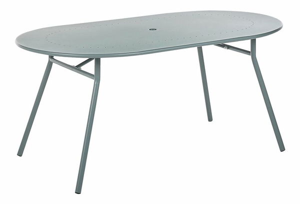 Tento pevný záhradný stôl je veľmi praktickým doplnkom do akéhokoľvek vonkajšieho prostredia. Umožňuje vám vychutnať si jedlo pod holým nebom alebo len tak relaxovať s priateľmi či príbuznými. Je vyrobený z nehrdzavejúceho kovu, odolá nepriaznivým poveternostným podmienkam a intenzívnemu používaniu, a zároveň sa ľahko čistí. Jeho praktickosť navyše zvyšuje otvor na slnečník v strede vrchnej dosky stola. Nadčasový dizajn pôsobí jednoducho, no zároveň štýlovo a dodá vašej záhrade nevšednú atmosféru.
