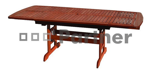 "Stôl je vyrobený z velmikvalitní exotickej dreviny meranti. Vysunutím nástavcov zo strán stola vyberet jednu z troch dĺžok stola. Výhodou toho systému je, že už nikdy nemusíte nič zberať zo stola. Masívne podnož stola s výplňou, ktorá dodáva stola stabilitu a pevnosť. Poistka proti samovoľnému rozloženiu stola."