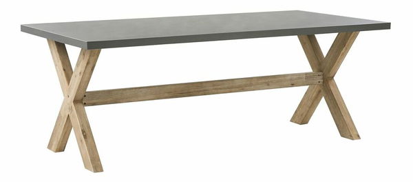 Skrášlite vzhľad svojej záhrady pomocou tohto jedálenského stola, vďaka ktorému bude stolovanie oveľa jednoduchšie. Stolová doska vyrobená z vláknitého cementu je ideálna na použitie v exteriéri. Okrem toho sa ľahko udržiava a čistí a odolá rôznym vplyvom počasia. Nohy zo svetlého akáciového dreva zaručujú stabilitu konštrukcie a príjemne kontrastujú s betónovou doskou stola, ktorý je ideálnou voľbou do vonkajších priestorov v modernom a minimalistickom štýle.