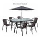 Predstavujeme vám jedinečný kúsok vo forme jedálenského stola vhodného do záhrady či na letnú terasu. Stôl PASTER je vyrobený z kvalitného tvrdeného skla a čiernej ocele. Plát stola je predpripravený na osadenie slnečníka. Použitý materiál je nenáročný na údržbu. Konštrukcia je pevná a zabezpečuje stolu stabilitu. Stôl je určený až pre šesť osôb.