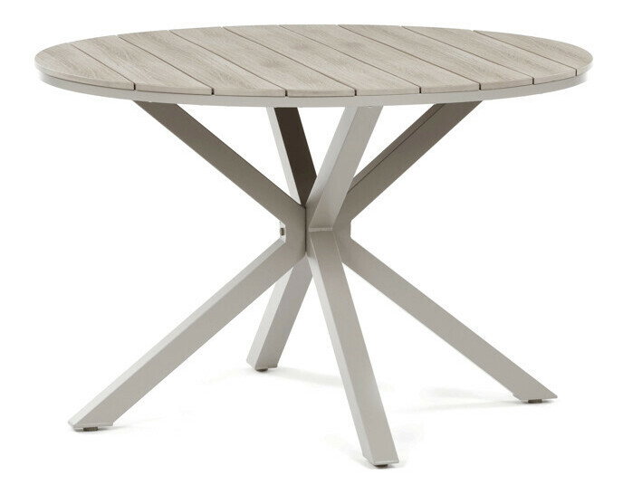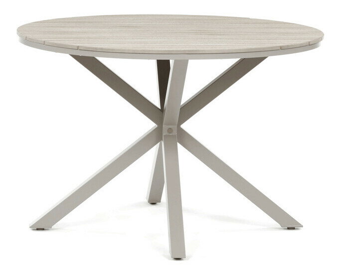 Záhradný stôl s rozmermi 110x75 cm kombinuje pevnú hliníkovú podnož s doskou z polywoodu v dekore divoký dub, ktorá ponúka odolnosť voči poveternostným vplyvom a jednoduchú údržbu. Béžové prevedenie dosky dopĺňa moderný a nadčasový dizajn, ktorý sa hodí do rôznych vonkajších priestorov, od terás po záhrady. Stabilná štvornohá konštrukcia zabezpečuje bezpečné a pevné postavenie stola aj na nerovnom povrchu. Polywoodová doska verne napodobňuje štruktúru dreva, pričom je odolná voči vlhkosti a UV žiareniu, čo predlžuje jej životnosť. Stôl je vhodný na každodenné použitie pri vonkajších stretnutiach a vďaka svojmu dizajnu vytvára príjemné prostredie na relaxáciu aj stolovanie.