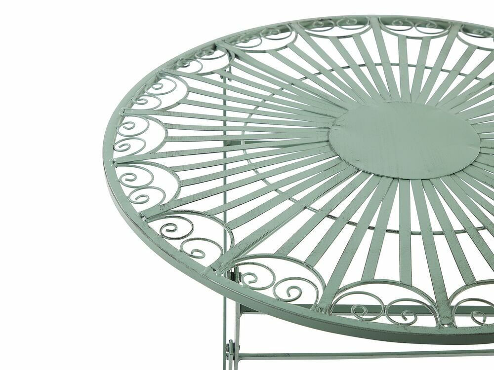 Vneste do svojho vonkajšieho priestoru dokonalú romantickú atmosféru. Tento skladací zelený stolík je ideálnym doplnkom na akýkoľvek malý balkón alebo terasu a ponúka útulné miesto pre dve osoby. Práškové lakovanie s opotrebovaným vzhľadom dodáva stolíku vintage charakter. Pridajte ladiace stoličky, zopár rastlín a vychutnajte si príjemnú atmosféru pri rannej šálke kávy.