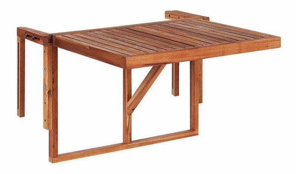 Tento praktický závesný stolík je ideálnym doplnkom pre tých, ktorí majú na balkóne málo miesta. Je vyrobený z pevného a odolného akáciového dreva v prírodnom prevedení, ktoré dodá každému priestoru útulnosť a prirodzený charakter. Tento kúsok má nastaviteľnú rukoväť, vďaka ktorej ho možno umiestniť prakticky na akékoľvek balkónové zábradlie. Ak stolík nepoužívate, je možné ho jednoducho zložiť a ušetriť tak ešte viac miesta.