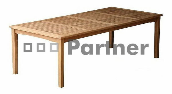Veľmi pevný záhradný stôl z jednej z najtvrdších drevín teak. Je klasického štýlu a hodí sa ako na záhradu, tak na terasu kaviarne, či co altánku. Stôl je pevnej konštrukcie. Nohy sú zasadené v rohoch konštrukcie stolovej dosky. Pre výrazné predĺženie životnosti a zachovanie kresby teakového dreva, doporučujeme aspoň jedenkrát ročne ošetriť teakovým olejom.