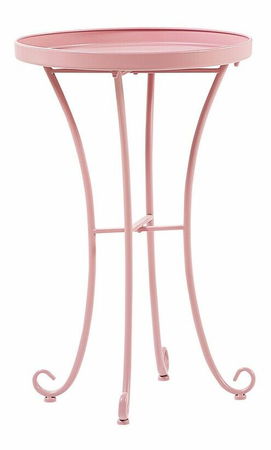 Vďaka tomuto nádhernému stolíku vnesiete na svoj balkón, terasu alebo záhradu kúzelnú vintage atmosféru. Kúsok je vyrobený z pevného a odolného železa s práškovým lakovaním. Vrchná časť v klasickom okrúhlom dizajne je doplnená zdobenými nožičkami s nadčasovým vzhľadom. Stolík vo výraznej ružovej farbe obohatí akýkoľvek priestor o glamour akcent. Umiestnite ho vedľa stoličky alebo lavičky a získajte tak priestor navyše na kávu alebo časopisy.