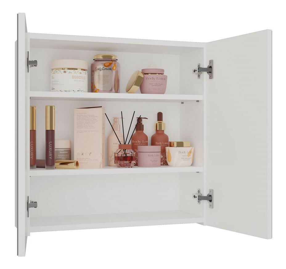 Závesná kúpeľňová skrinka Perdieron 4 v elegantnej bielej farbe je ideálnym riešením pre malé a stredné kúpeľne, kde efektívne využíva priestor nad umývadlom. S dvoma dverami a dvoma zrkadlami ponúka praktické úložisko s tromi poličkami, ktoré sú skryté za štýlovými dverami. Skrinka je vyrobená z kvalitnej laminovanej drevotriesky, čo zaručuje jej dlhú životnosť a jednoduchú údržbu. Vytvorte si prehľadný a štýlový priestor vo svojej kúpeľni s touto praktickou skrinkou.