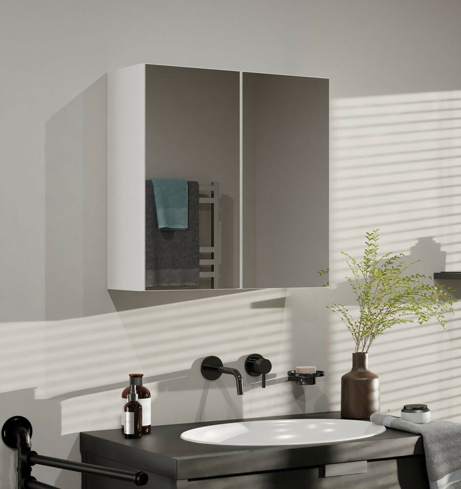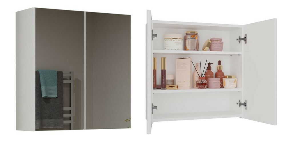 Závesná kúpelňová skrinka Perdieron 4 (biela) (so zrkadlom)