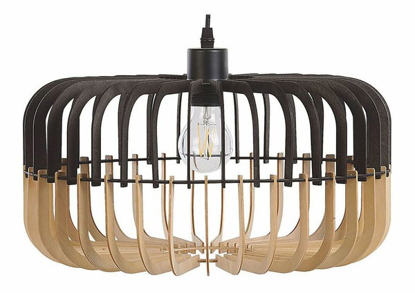 Toto závesné svietidlo bude perfektným doplnkom všetkých interiérov v štýle boho, škandinávskom a modernom štýle. Predstavuje prirodzený vzhľad a dodáva pokojný pocit. Je vyrobený z MDF vo svetlom odtieni dreva a čiernej. Táto lampa sa môže pochváliť čistým dizajnom, ktorý dodá každému domácemu prostrediu prívetivý pocit.