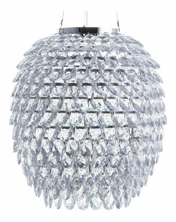 Vneste do každej obývačky oslnivý nádych s týmto elegantným závesným ambientným svietidlom. Zdobené množstvom krištáľových kvapôčok. Tienidlo má chrómovaný kovový rám pre žiarivý vzhľad. Je to svetlo, ktoré dokonale ladí s glamour alebo art-deco domácim dekorom.