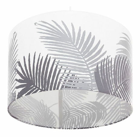 Stropná lampa s tienidlom v tvare bubna je skvelou voľbou do každého interiéru. Jej tienidlo je vyrobené z odolnej látky v bielej farbe a je ozdobené vzorom sivých listov. Vďaka zladenej bielej farbe je elektrický kábel, ktorý je pripevnený k žiarovke takmer neviditeľný. Vďaka jednoduchému tvaru a industriálnemu dizajnu je lampa vhodná do všetkých obytných priestorov.