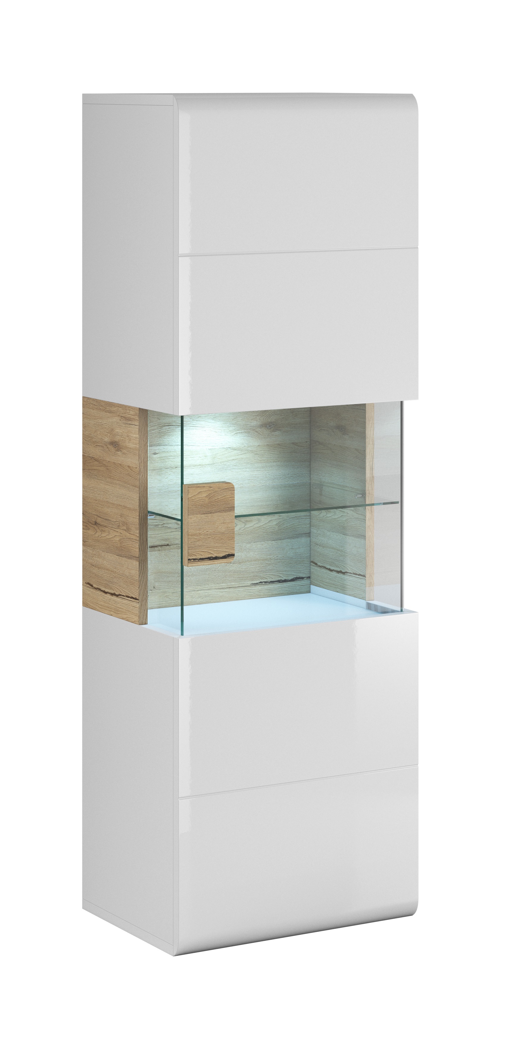 Závesná vitrína vysoká Tamie Typ 07 (lesklá biela + dub sanremo) (P)