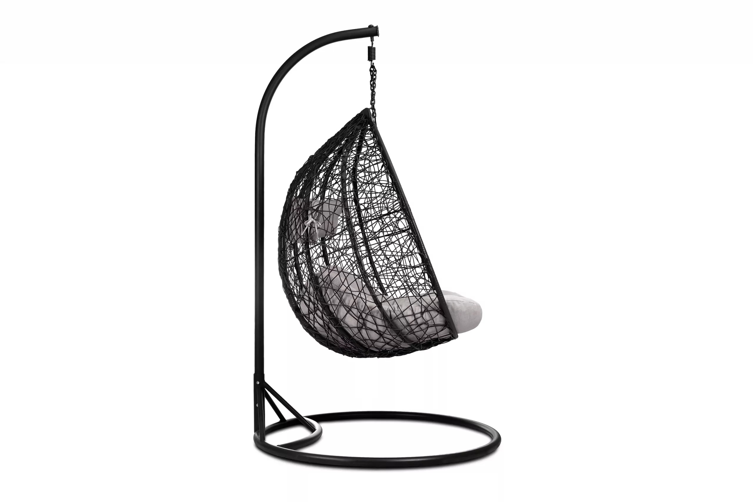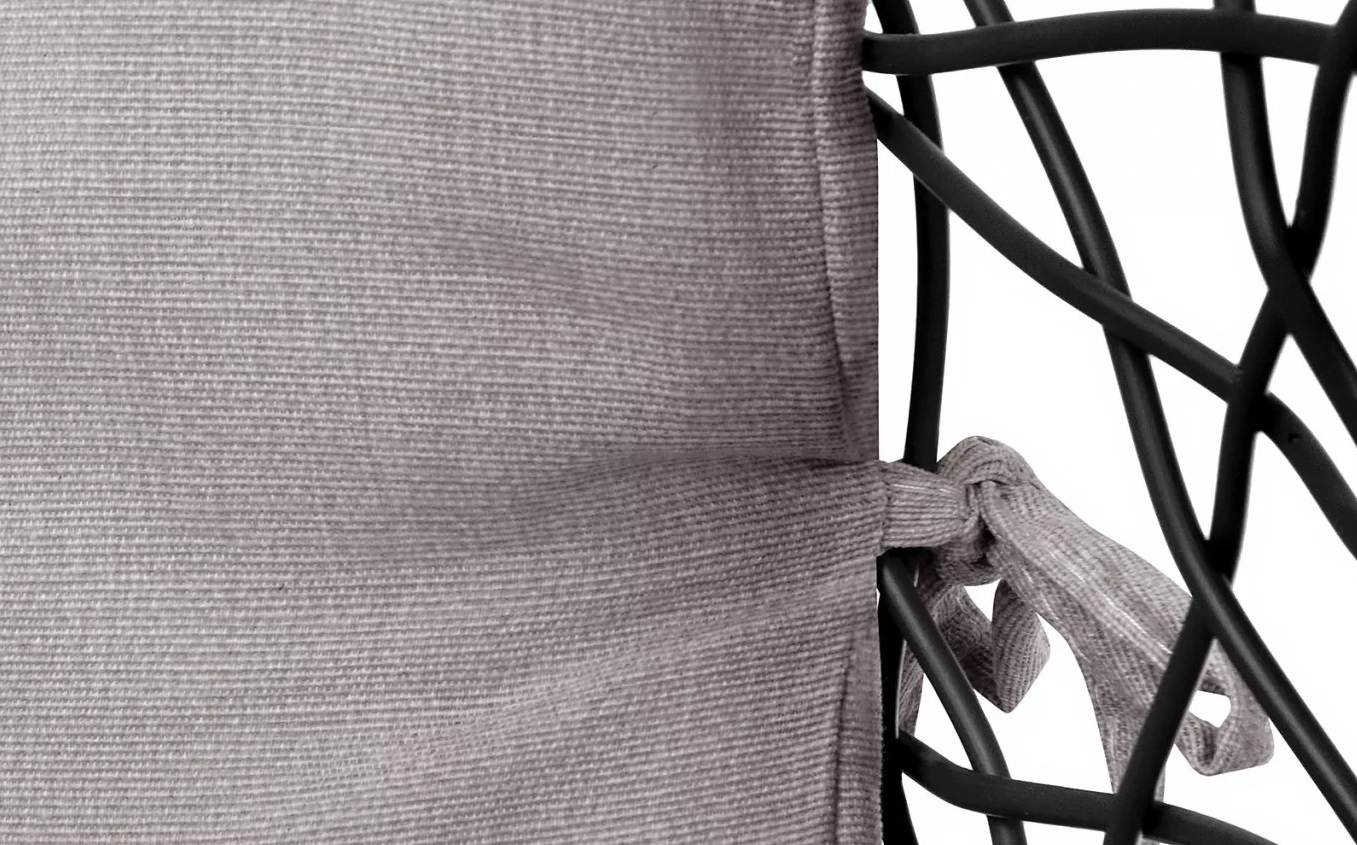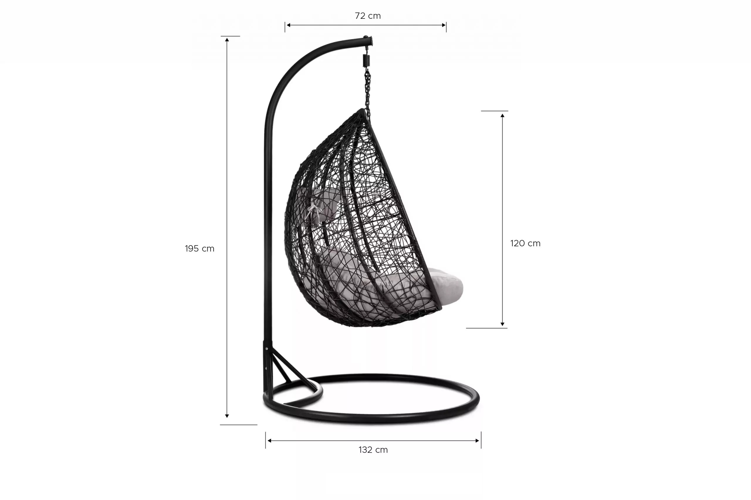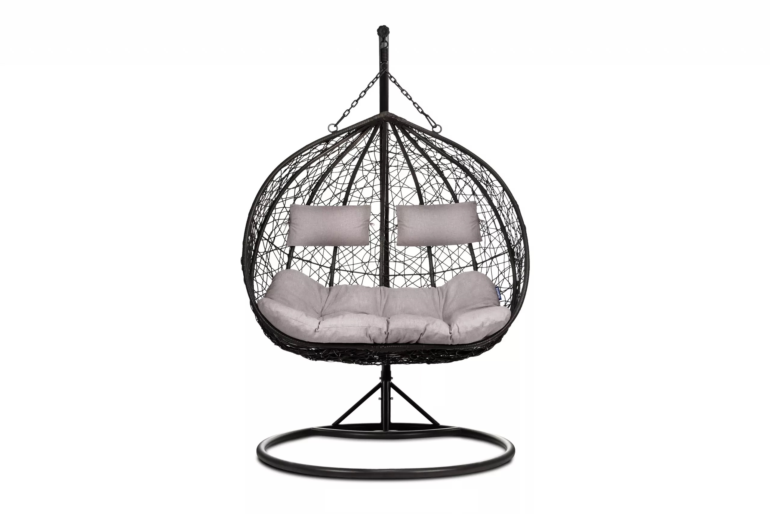 Závesné dvojkreslo Cleopatra v sivých odtieňoch je elegantné ratanové kreslo, ideálne pre záhradu alebo terasu. Jeho pohodlie a tvar poskytujú dokonalé miesto na oddych. Materiál kresla je technoratan, kov a tkanina s antialergickou výplňou HCS z polyesteru a silikónových guličiek. Tento materiál je vysoko odolný proti oderu. Maximálne zaťaženie kresla je 130 kg. Nohy sú vyrobené z kovového rámu. Priemer rámu a výška rámu sú štandardné. Hlavný ratanový zväzok je hrubý 1,2 cm. Tento nábytok je odolný voči poveternostným vplyvom a súčasťou produktu sú vankúše, ktoré je možné umývať v tlakovej umývačke.