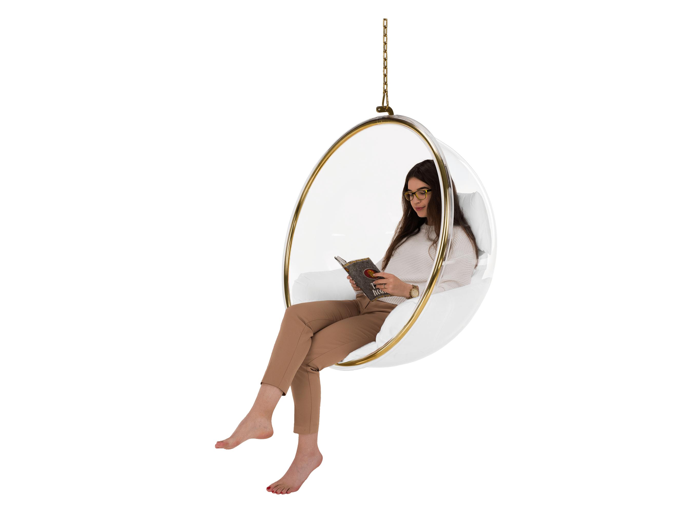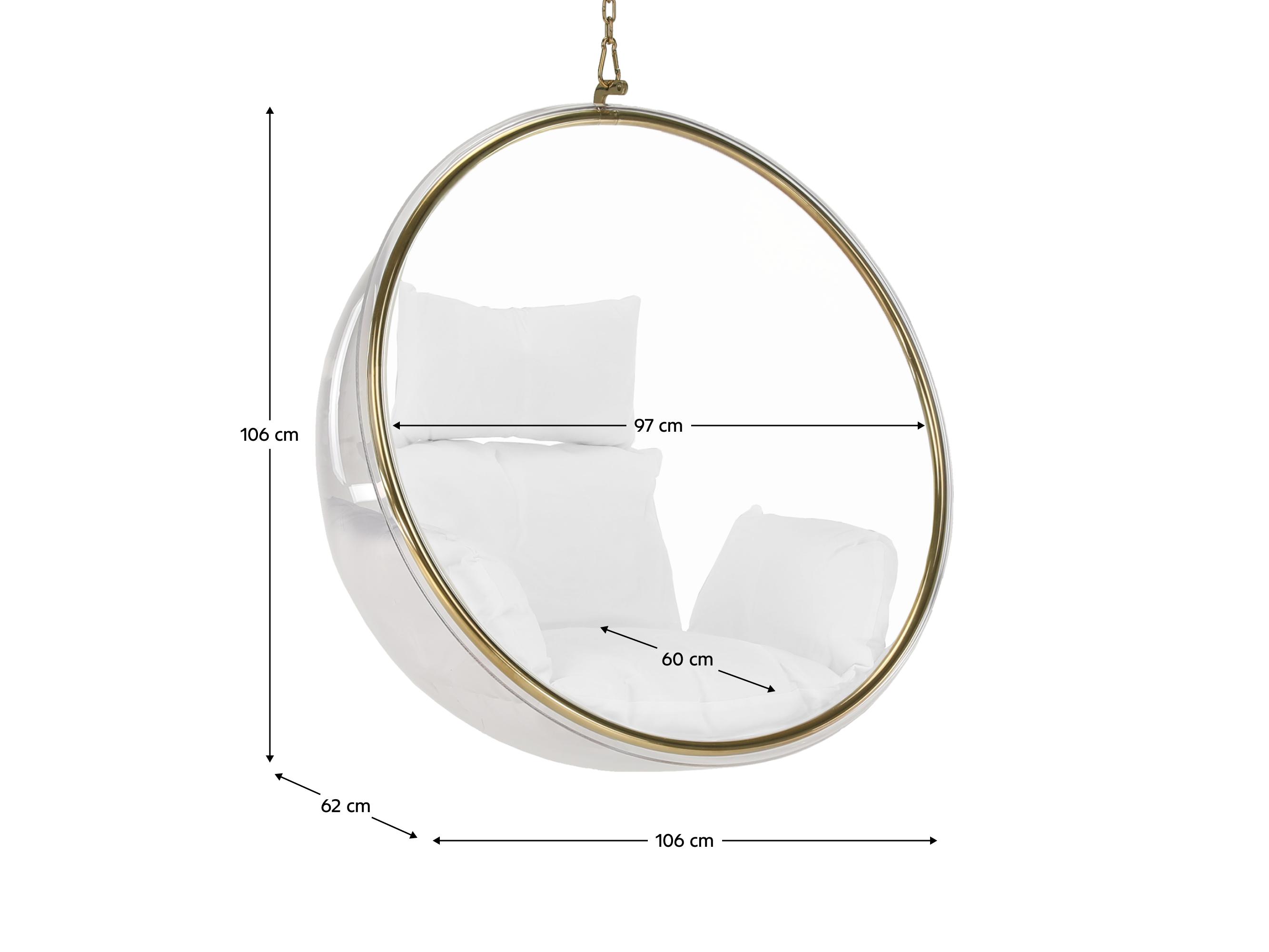Závesné hojdacie kreslo Belgica 1 (transparentný + zlatá + biela)
