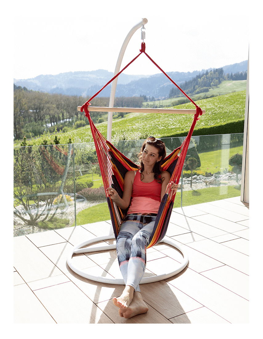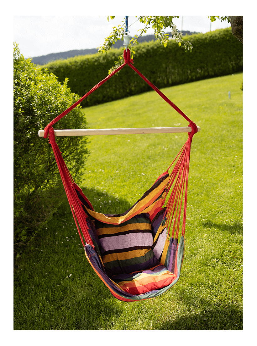 Závesné hojdacie kreslo Nicolaj (červená) je ideálnou voľbou pre tých, ktorí hľadajú pohodlný a zábavný spôsob relaxácie. Kreslo má výšku 130 cm a hĺbku 100 cm. Je vyrobené z kvalitných materiálov, a to z 50% bavlny a 50% polyesteru s drevenou rozpernou tyčou. Jeho nosnosť je až 120 kg a dodáva sa v červenej farbe. Kreslo je špeciálne obšité a má v balení aj dva vankúše. Je vhodné ako do interiéru, tak aj exteriéru. Stojan nie je súčasťou balenia, no môžete si ho jednoducho doobjednať. Kreslo sa dodáva v demonte a jeho rozmery sú 100x100x130 cm. Ak hľadáte pohodlné a zábavné miesto na relaxáciu, Závesné hojdacie kreslo Nicolaj (červená) je tou správnou voľbou pre vás.