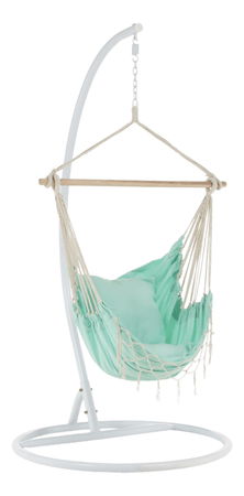 Závesné hojdacie kreslo Orilana (neo mint) s výškou 130 cm a hĺbkou 55 cm je ideálnym doplnkom pre vašu terasu alebo záhradu. Vyrobilo sa z bavlny a polyesteru v modernom prevedení neo mint, ktoré ozvláštni vaše exteriéry. Kreslo je chránené proti predratiu látky, takže ho môžete bez obáv používať. Má veľký počet šnúrok, ktoré zabezpečujú pohodlné sedenie aj pre osoby s väčšou hmotnosťou. Navyše, obsahuje dva vankúše na pohodlie. Kreslo zaujme aj strapcami. Nosnosť kresla je až 120 kg. Upozorňujeme, že stojan nie je súčasťou balenia a je nutné ho priobjednať. S týmto kreslom si užijete nezabudnuteľné chvíle s vašimi priateľmi a rodinou.