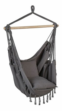 Pekné a funkčné závesné kreslo bude dokonalým doplnkom terasy, balkóna alebo obývacej izby. Sedadlo vyrobené z pevnej a kvalitnej látky je doplnené vkusnými strapcami, ktoré mu dodávajú bohémsky nádych. Na jednej strane je malé vrecko ideálne na odloženie okuliarov alebo knihy. Spolu s priloženými vankúšikmi vytvára skvelé miesto na čítanie a relax. Kreslo sa dodáva kompletne zmontované, zabalené v látkovom vrecku a pripravené na použitie.
