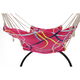 Závesné kreslo Kerli v ružovej farbe je výnimočný kus nábytku pre váš interiér či exteriér. Materiál kresla tvorí 50% bavlna a 50% polyester, zatiaľ čo drevená doska zabezpečuje jeho pevnosť a nosnosť až do 120 kg. Kreslo má výšku 99 cm a rozmer 90x99 cm. Špeciálne obšitie chráni látku pred predratím a dáva kreslu jedinečný vzhľad. Kreslo je dodávané v demonte a bez stojana, ktorý si môžete doobjednať. Užite si pohodlie na čerstvom vzduchu alebo v interiéri s týmto skvelým kusom nábytku.